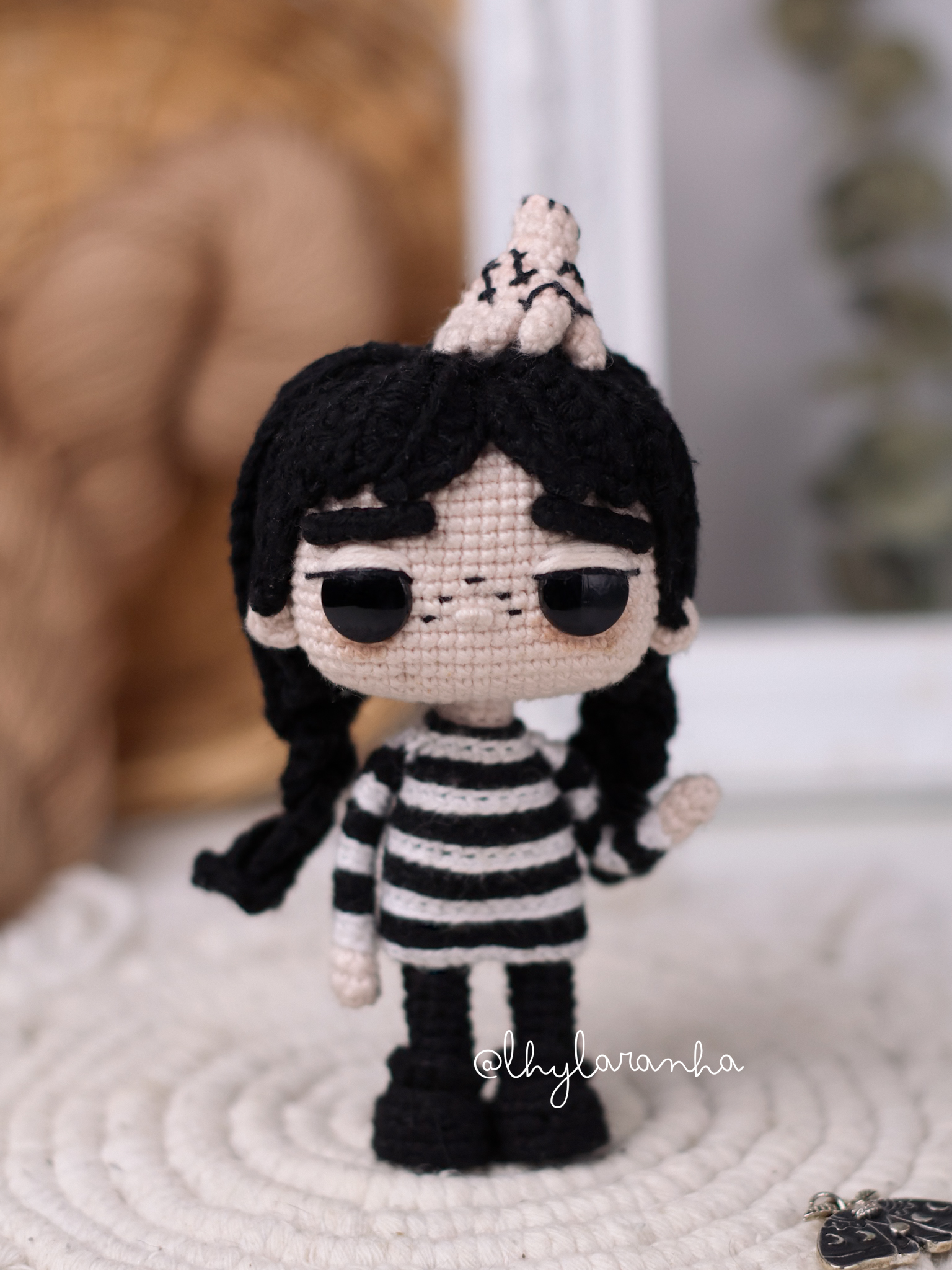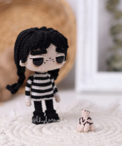 El patrón incluye todos los pasos para confeccionar a mis dos versiones en amigurumi de Merlina, contiene fotos e indicaciones bien detalladas, además de videos de apoyo.